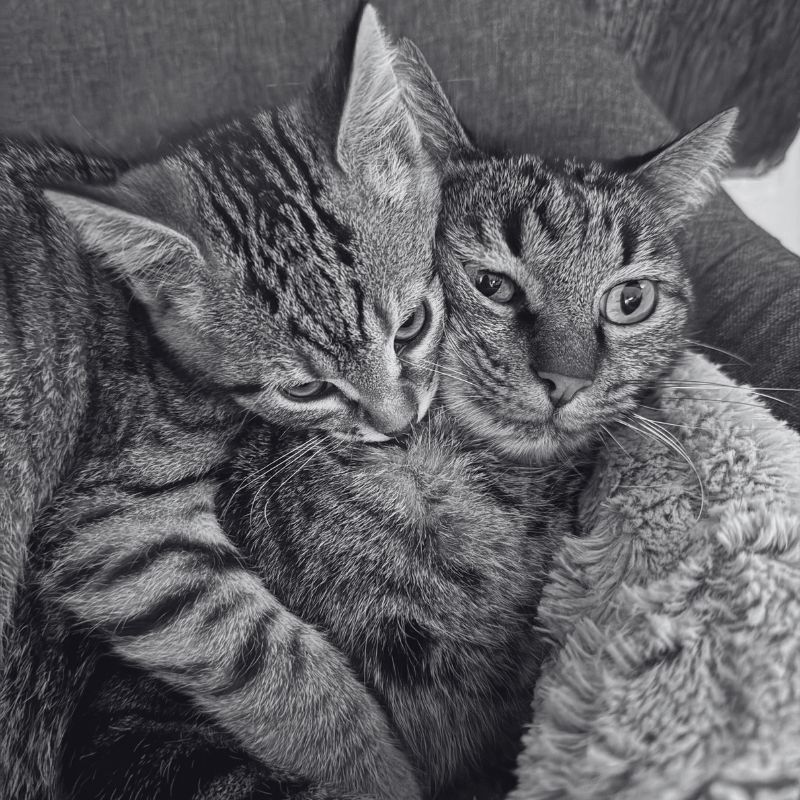 Nos deux chats s’invitent régulièrement lors de nos visios. Ne soyez pas surpris si vous apercevez une moustache ou une pattes passer devant la caméra !